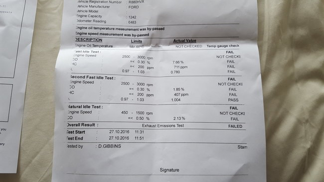My car failed its MOT on emissions (see attached photo) is this the end of my engine and I need a new one? is there any quick wins I could do to improve the emissions to get it through the MOT? Advise from the garage was a new engine pointless repairing it.