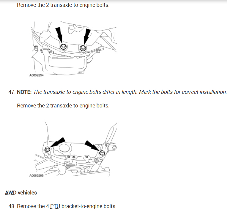 Here are the step-by-step instructions which included the AWD version which you can just skip the steps for. Go slow and don't take any chances with the engine or transmission there are heavy and can cause injury if not handled correctly. If you run into a situation you are unsure of please get back to me with an image or short video. Check out the images (below).