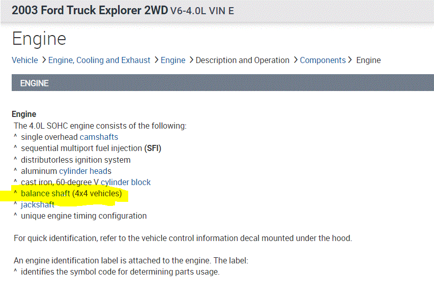 A balance shaft is only used on the 4.0L SOHC engines on the 4wd models. See the pics below. Are you referring to something different?