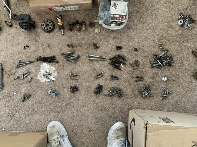 I had my bolts separated but I am also in the process of fixing my house up (painting, skim coating drywall, etc.) and in all of that my bolts have gotten mixed up because I wasn’t being careful. Is there a way for me to find out which bolts go to which bolt hole? Only thing I can think of is laying them out and matching them up and if there are 5 that fit in a place that has 5 bolt holes then put them there. The bolt holes that are left over I was going to call the parts department at the Ford dealership and ask what the part numbers are for those bolts and look them up and match them up with the bolts that are left over and put them in the appropriate bolt hole. That will take a while though so I’m hoping there is an easier way.
