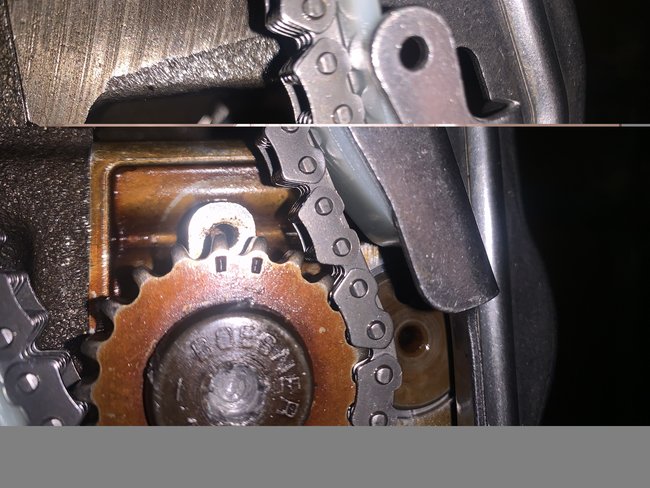 As Joe said, you are a tooth off. You need to realign the chain to get the correct alignment.