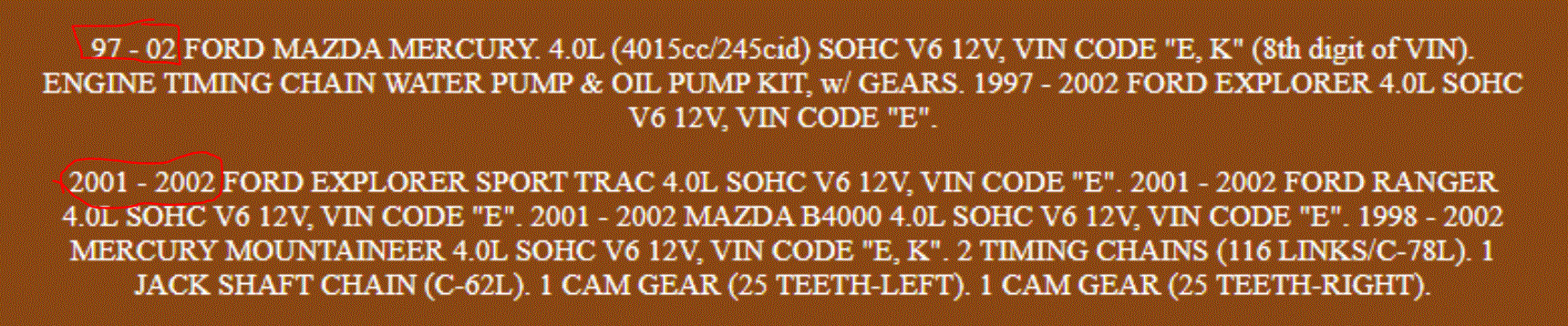 If you look below, that is the only thing we could find related to these parts. Also, note that they appear to come in all timing chain kits for the 4.0L, but they all don't require their use.