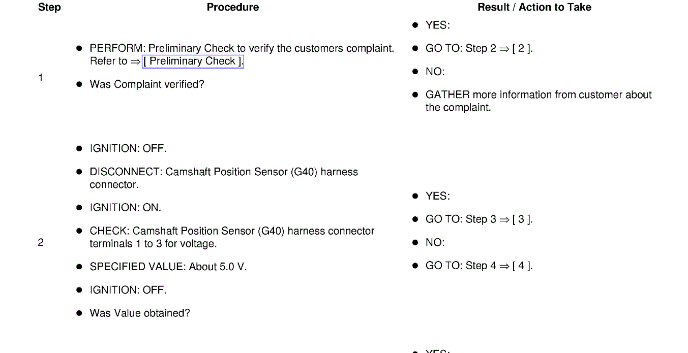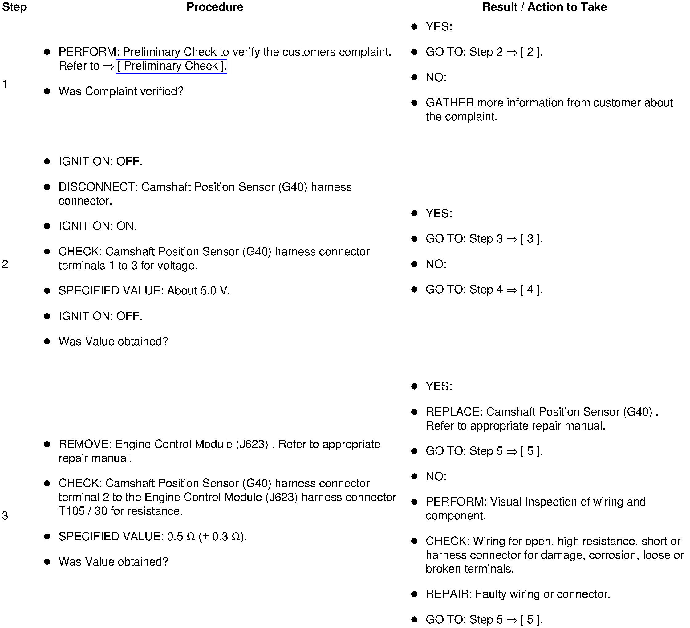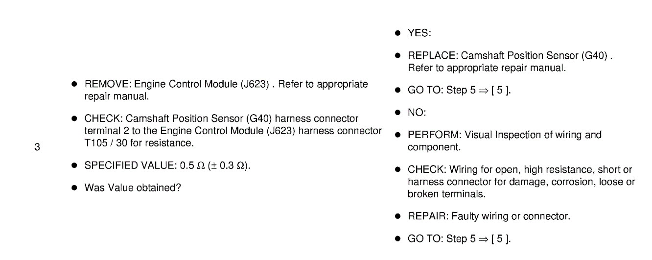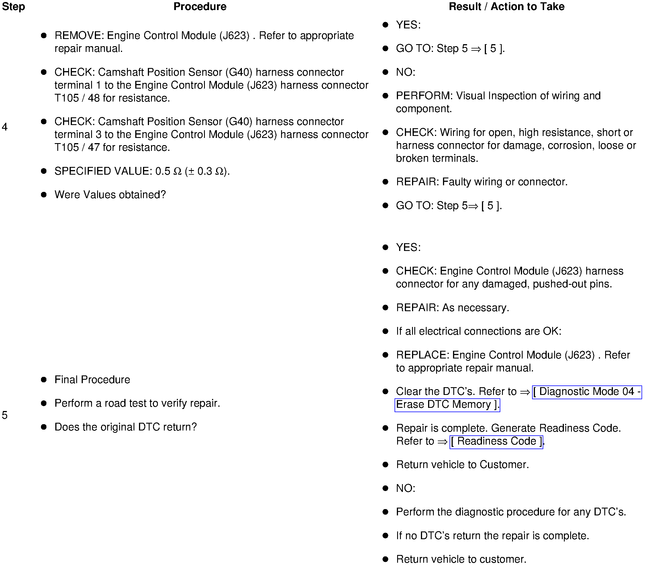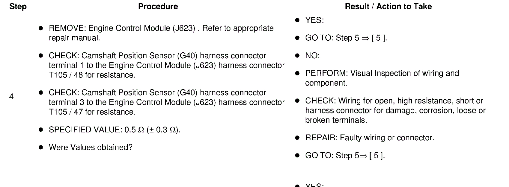 Vehicle Powertrain Management Computers and Control Systems Testing and Inspection Component Tests and General Diagnostics Camshaft Position Sensor (G40), Checking