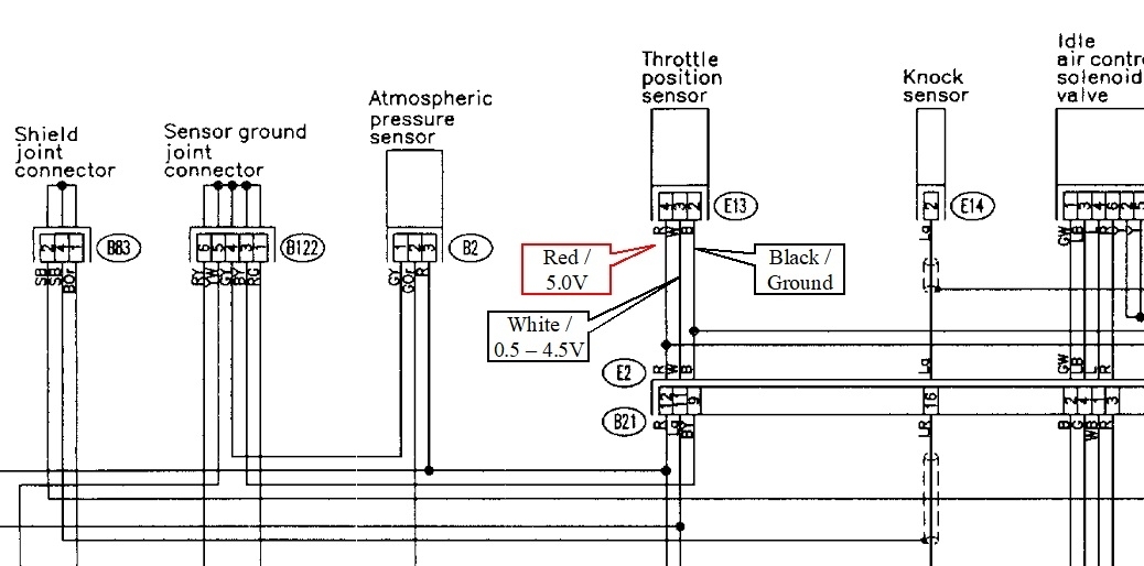 The diagram is one of four for Powertrain Management. The second one is just part of it blown up for easier viewing. I added the three callouts for the wires to the TPS. Let me know what you find on those for voltages. Will be back tomorrow to see how far you got.
