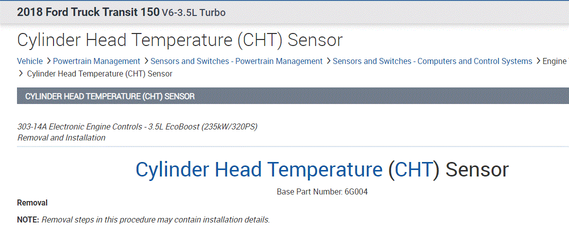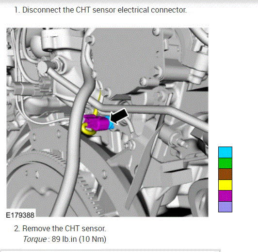 This vehicle has a cylinder head temperature sensor (CHT). The sensor is located on the rear of the right cylinder head.