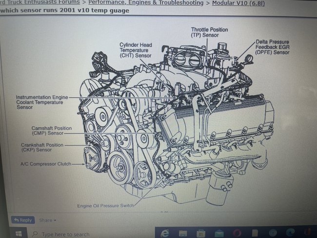 Okay, replaced twice thinking i had defective part. while driving temperature gauge would drop but when in idle normal temperature. Gauge dropped down enough for check gauge light and engine light to come on. Code came up for cylinder temperature sensor. changed twice same thing. went to Ford asked for Engine coolant temperature sensor and was given one that is different size. So, I'm wondering if there is a coolant temperature sensor somewhere else on the motor like in the back under manifold?