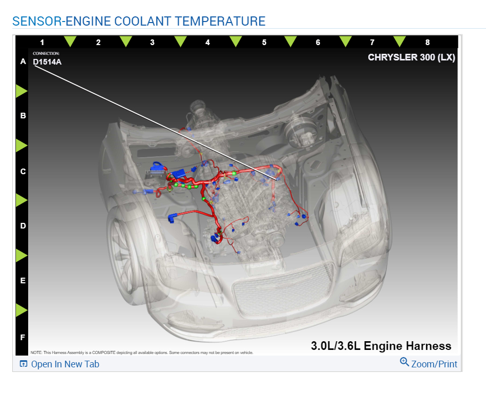 I have the car listed above 300S AWD 8-speed automatic transmission. How do I locate the two Engine Coolant Temperature Sensors?