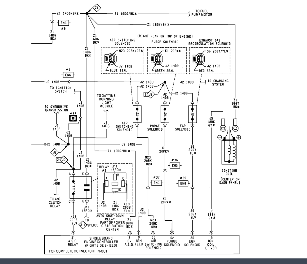 I have no spark coming from the coil. The coil and starter are both brand new. It was my dad's truck an he gave up on it some time ago so the truck has sat for 5 years. I checked the ASD relay and that is functioning properly. I did find a bad splice under the outside relay box on the left hand side of the truck. I repaired the bad splice but still no spark. I have tried finding a schematic online to see if I was getting power to my PCM but I couldn't find anything. I have no check engine light coming on on the dashboard. Maybe the bulb is bad I haven't yet pulled the bezel off to find out. Any help would be greatly appreciated.
