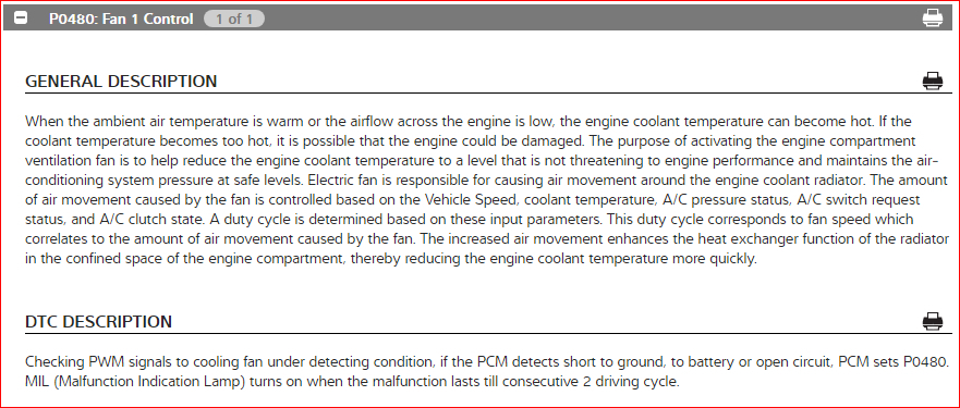 My daughters car has a check engine light and I checked it the code is PO480. I know that is a problem with the fan or controls. I asked about this last week but now there is a new problem.