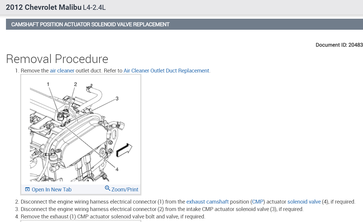 P0013 - Camshaft Position Actuator "B" Control Circuit/Open (Bank 1).