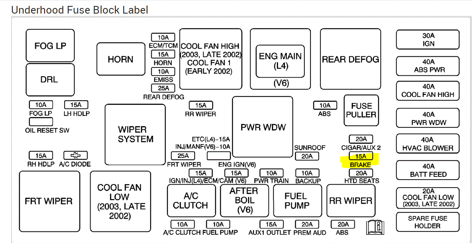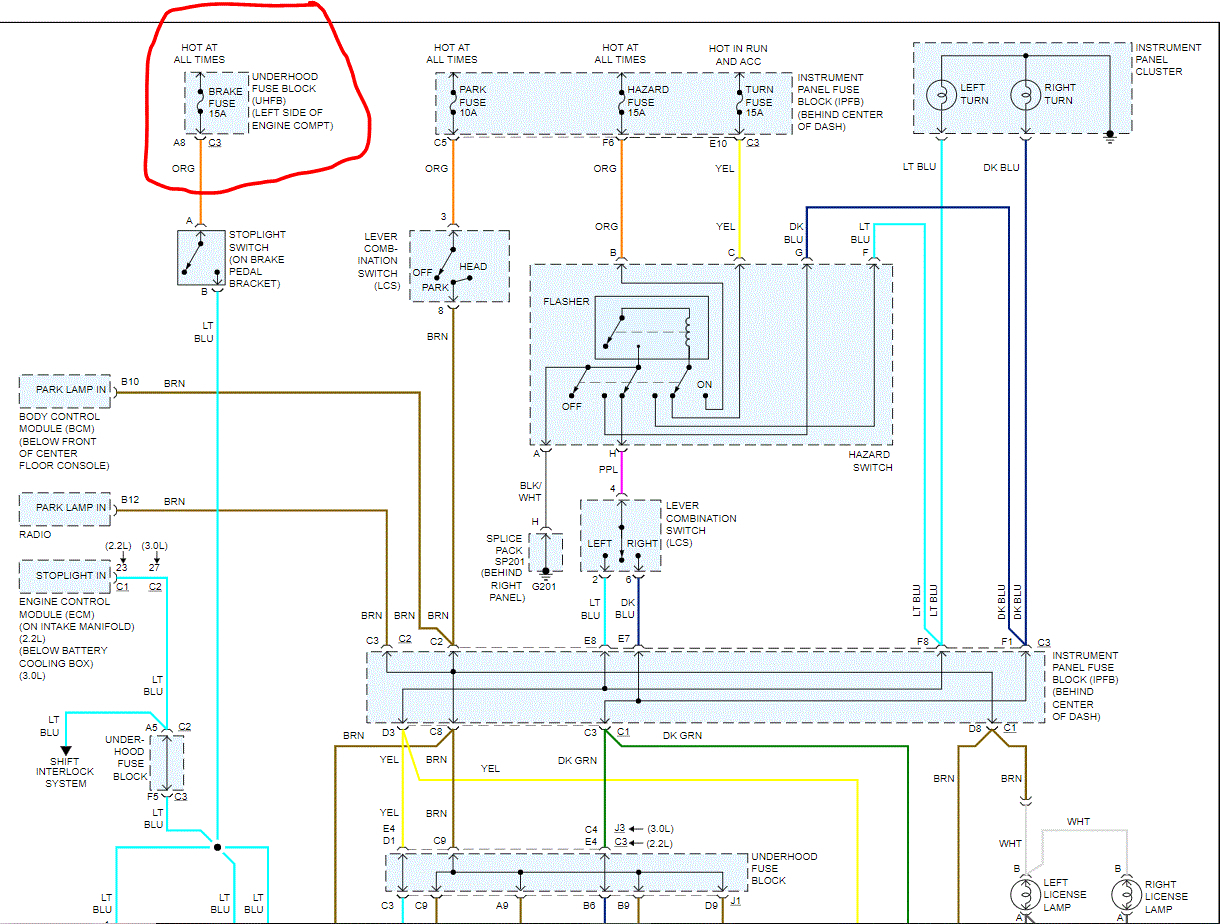 If you look below, the first three pics include the wiring schematic for the brake lights and the fuse location in the underhood fuse box.