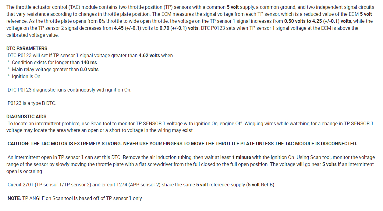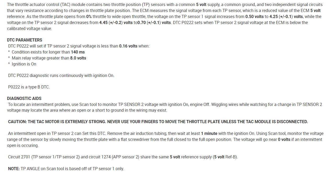 If you look below at the first three attachments, they provide the diagnostics for the p0123. That is related to sensor 1. The remaining pics are for the P0222 which is sensor 2.