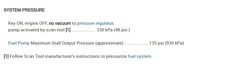 If you want to keep going and check this pump, you can block the return line going back to the fuel tank and dead head the pump, meaning it will put out its max pressure, you will only do this long enough to get a reading, but this pump has a stall out pressure of 135psi,