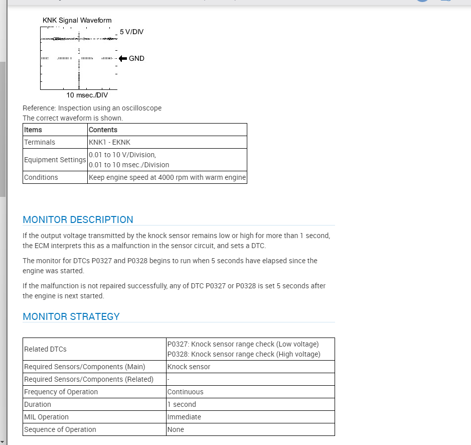 Engine light + Blinking 4LO + SLIP light on,but the car is running fine. The diagnostic tool shows the error code P0327: Knock sensor 1 Circuit low bank 1 or Single sensor.