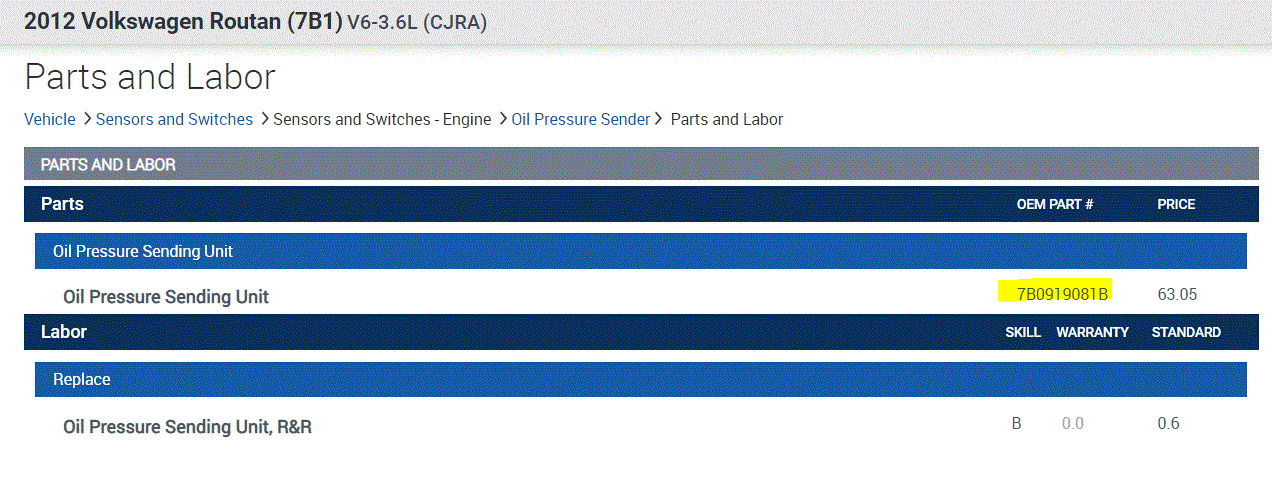 I have the part number for the oil pressure switch, but there isn't a listing for the oil temperature sensor. I attached the part number for the oil pressure switch. In all honesty, I would think they function differently, so I question if they are the same part.
