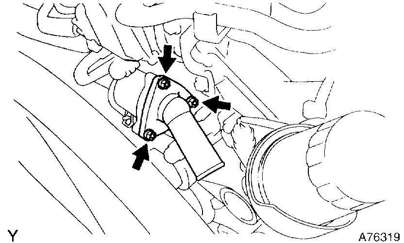 a. Remove the 3 nuts, water inlet with thermostat and gasket.