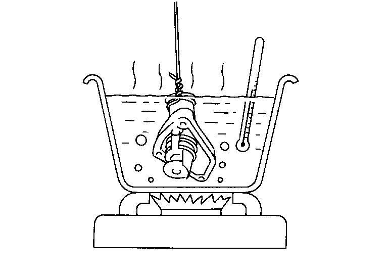 - Place a thread so that it is caught in the valve of the thermostat. Immerse fully in a container filled with water. Heat while stirring.