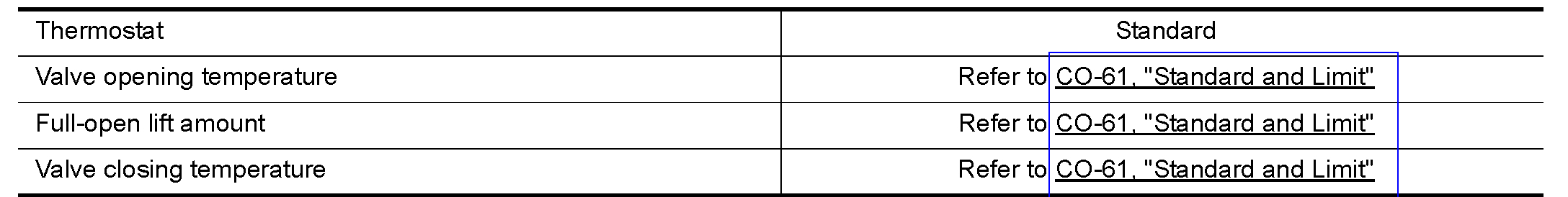 - If valve seating at measured values are out of standard range, replace water inlet and thermostat assembly.
