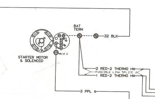 Respectfully, I don't think that's right. The diagram you sent me a few posts ago shows some spliced red lines going to the starter as well. It looks to me like the red spliced wires from the harness, and the red positive battery cable go on the same starter lug/terminal. Then the purple is alone by itself. Is that correct?