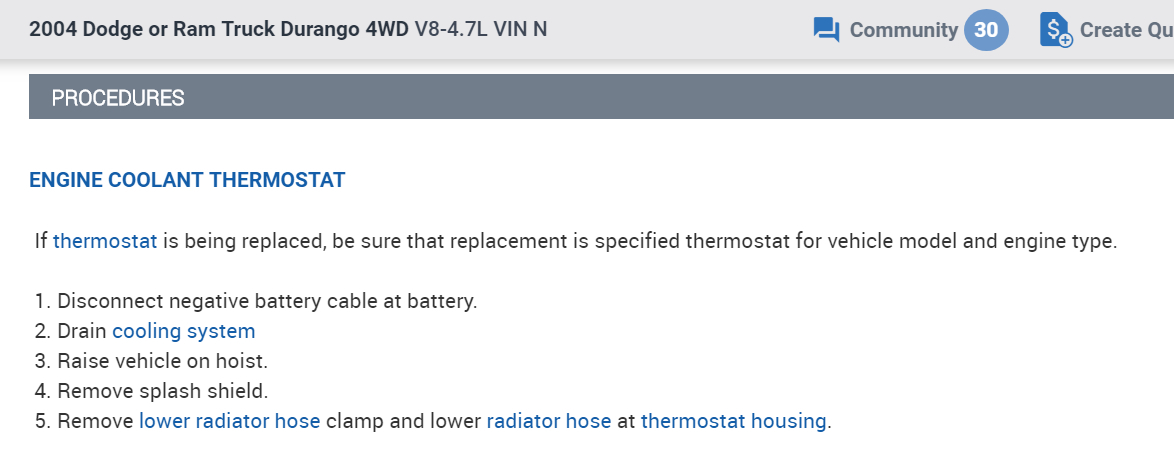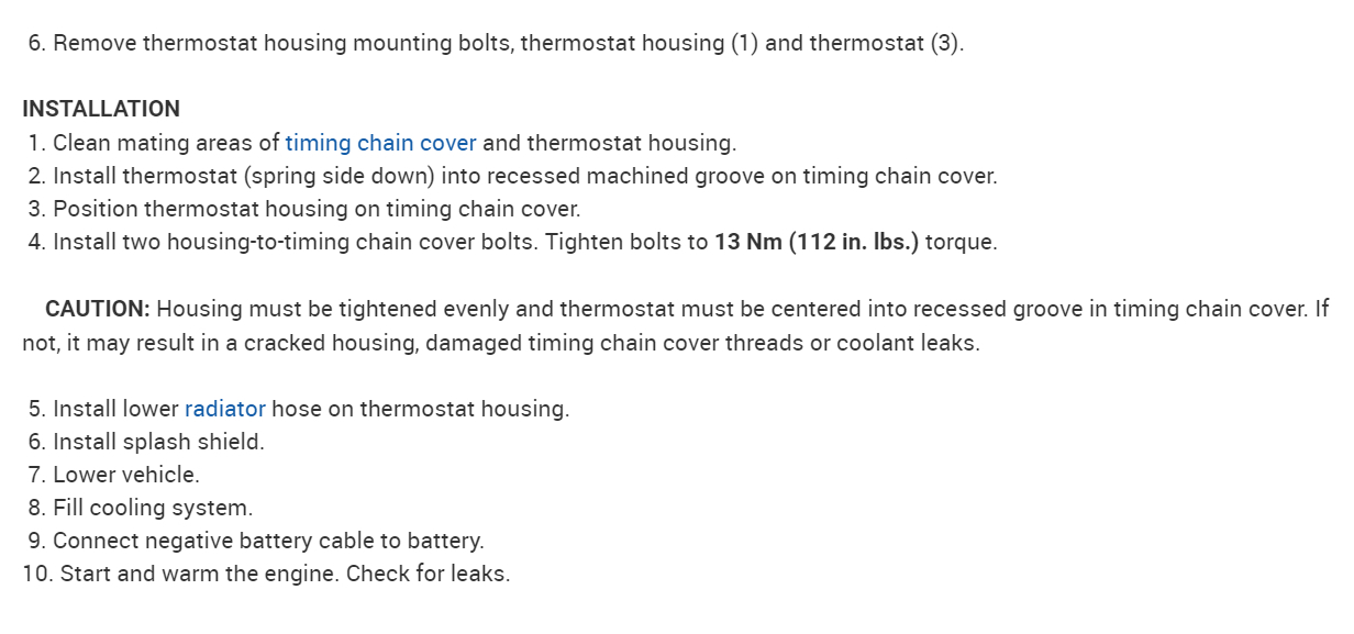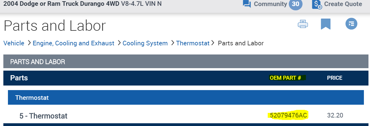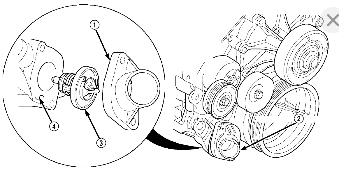 In the diagrams down below I have also included the Original Equipment Manufacturer (OEM) part number for your vehicle's thermostat as well as the directions for the removal and installation of the thermostat. Please go through these guides and get back to us with how everything turns out, or what you are able to find out.