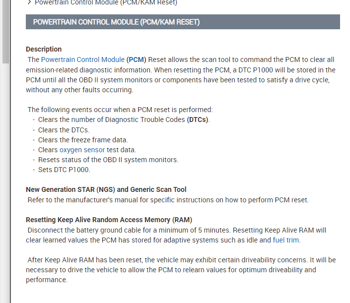 However, doing it this way will clear the keep alive memory which will force the vehicle to relearn the different monitors. It will do this but it will take time to go through the needed drive cycles. So if you have a vehicle inspection coming up then I would not recommend doing this as you will fail and have to get all the monitors to run again.