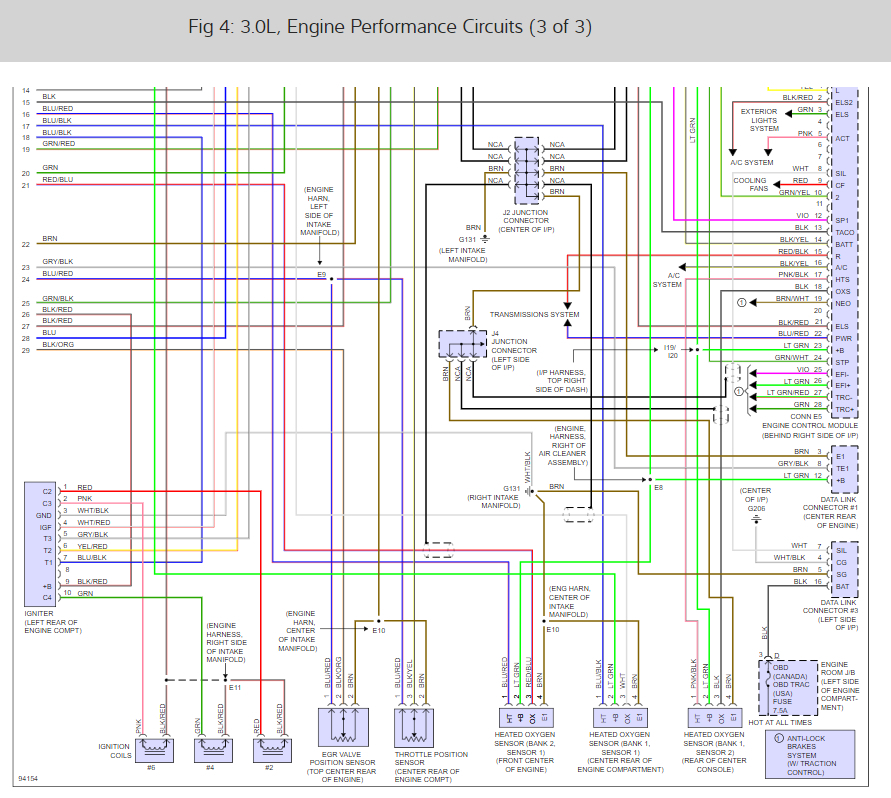 This code it for the ignition igniter problem. Here is the location so you can change it out and check the connections for corrosion. The igniter is located at the left rear of the engine compartment. Here is the engine wiring diagrams so you can see how the system works and the color wires going into the igniter.