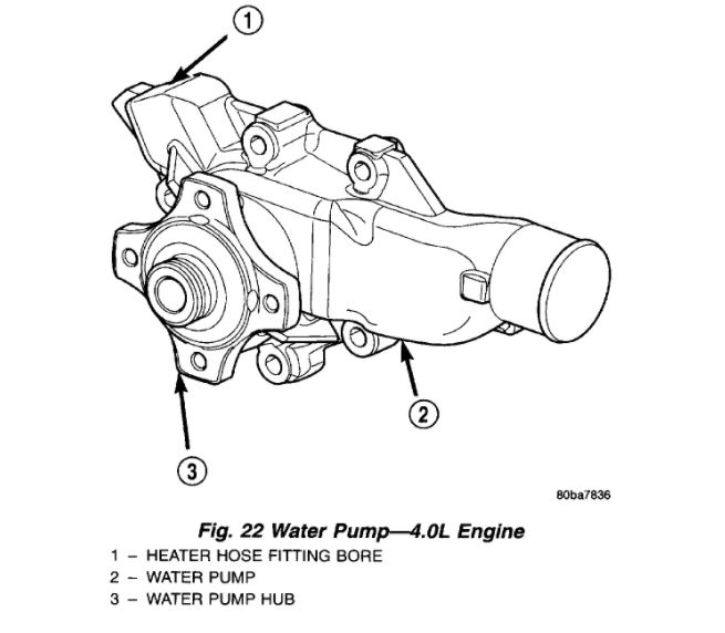 CAUTION: If the water pump is replaced because of mechanical damage, the fan blades and viscous fan drive should also be inspected. These components could have been damaged due to excessive vibration.