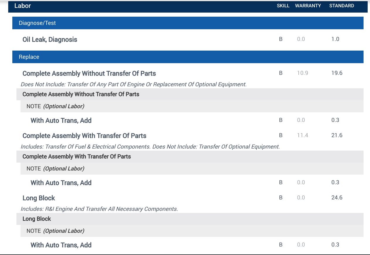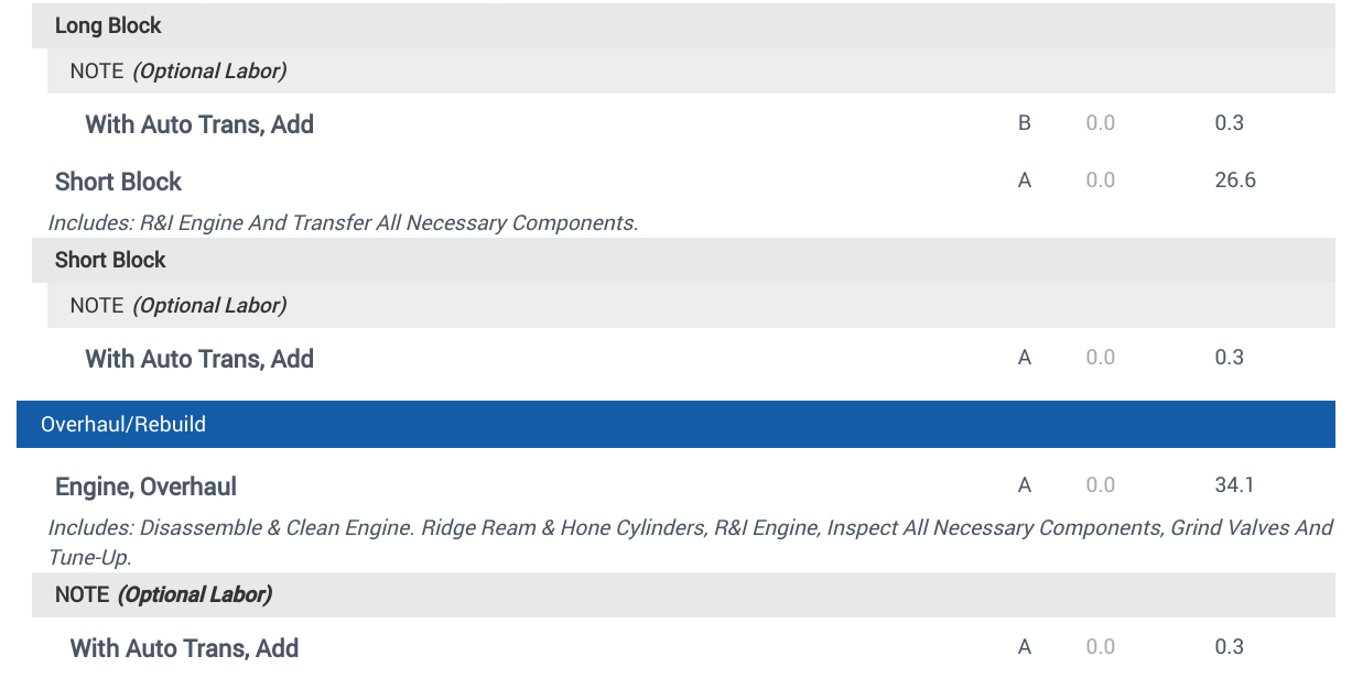 Could someone help e out and give me the AllData or equivalent to hours/cost of a full engine swap on the truck listed above? thanks