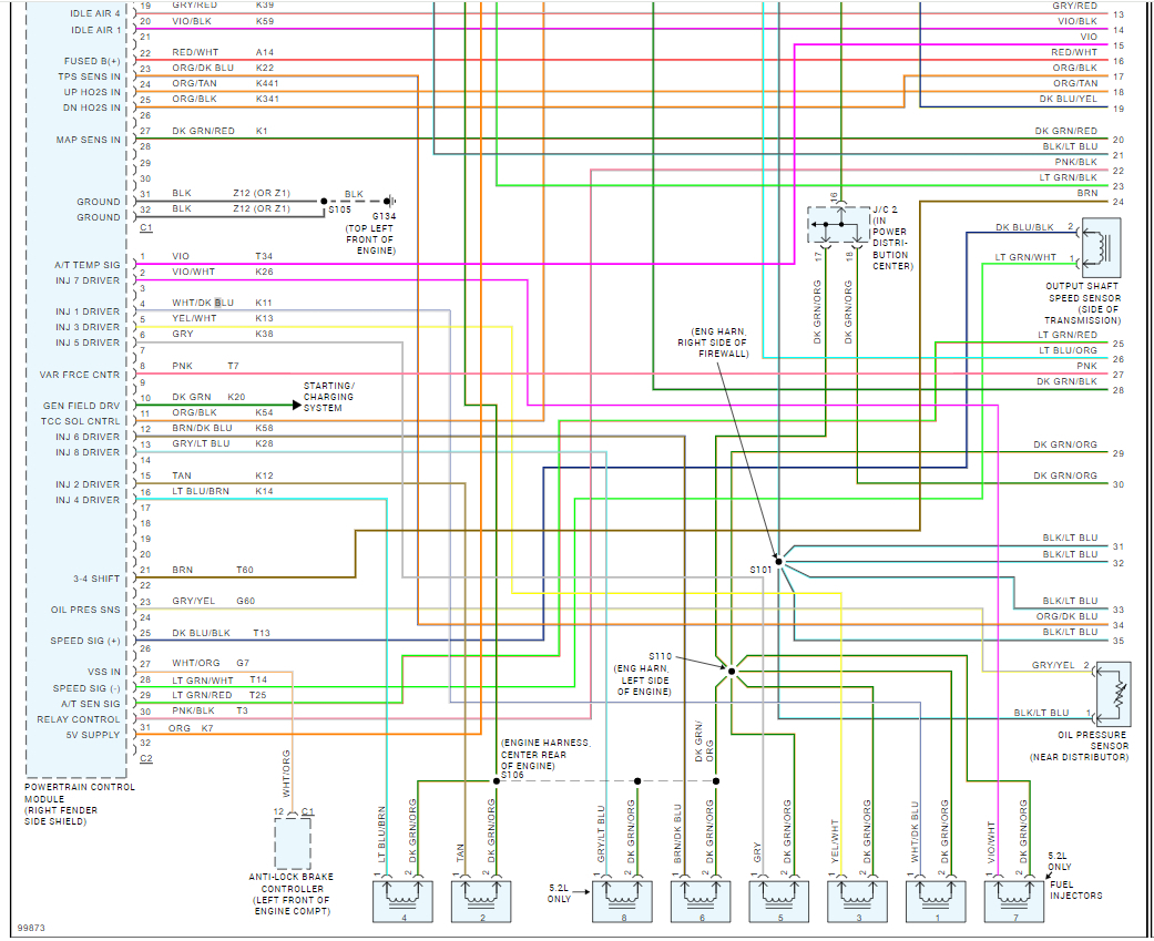 Hello, I am looking for the engine wiring diagram for the PCM for the 5-volt power supply. The engine runs and then periodically shuts off losing 5-volt supply.