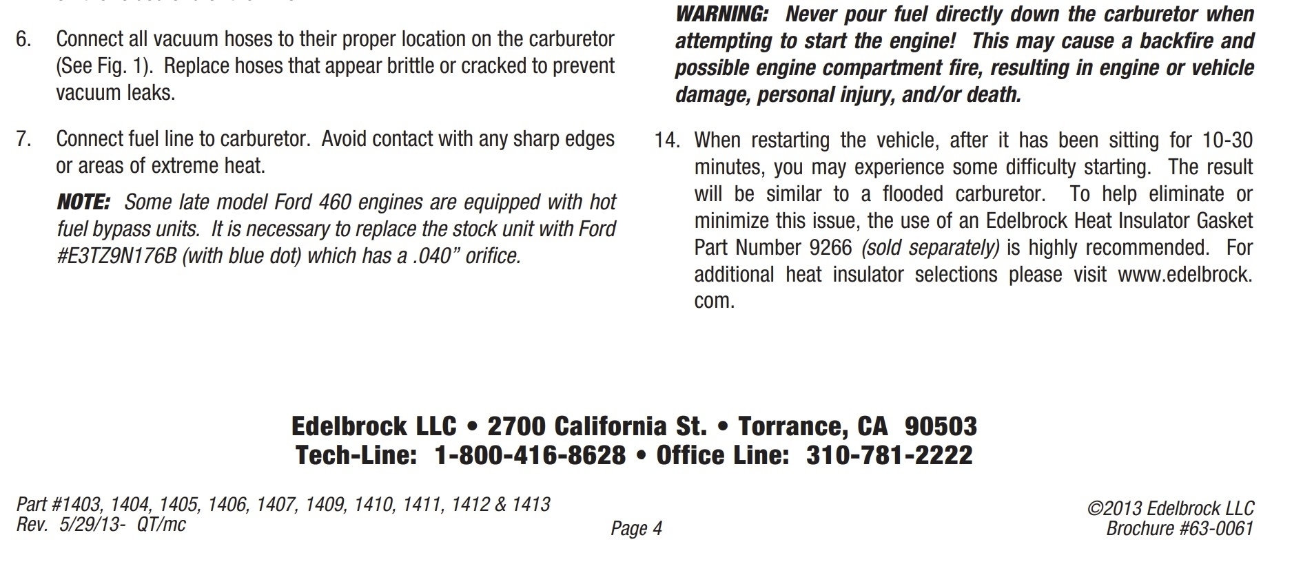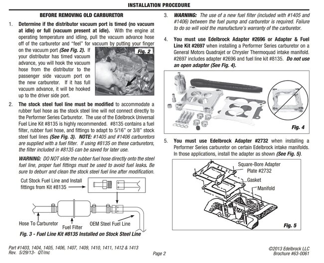 Engine is not original to truck. Block shows it could be anything from a truck to a Chevelle from 72-74. Ring rebuilt it and put on new Carb (Edelbrock 1405) and new Distributor (Accel 59130). Compression stands at 120. Adjusted floats and there was fuel in the bowls. Pins moved fine and like I said, spark plugs will get wet. If I turn it enough it will start to hydro lock with fuel. Spark plugs are firing (tested with spark plug tester). Before putting on a new distributor, had a point system and got it running poorly and very, very rich. Reading after the fact makes me think I should've gone with 500 cfm instead of 600.