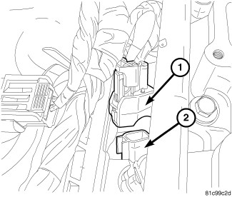 7. Connect all fuel injector electrical connectors (1) to fuel injectors (2).