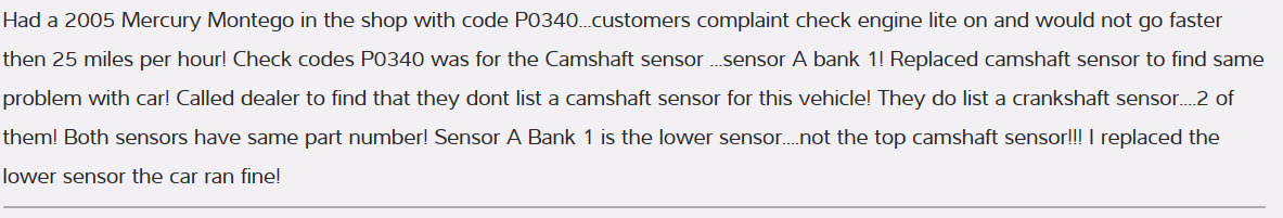 I have a Mercury Monterey 2005 just lately it started to have a problem at first it would sputter then run fine and only about once a month. Then it started getting worse with it stalling and then it would die after a loud belt squealing sound. It finely had the check engine light come on so I read the code P0340. I had read that this model had a problem with the ECU having water intrusion problems so I ordered a new ECU and installed it myself. But the problem came right back with the Squealing belt sound and the engine just shutting off after resetting the key to off and restarting it works for a few minutes then dies again with the RPM's around 2000.