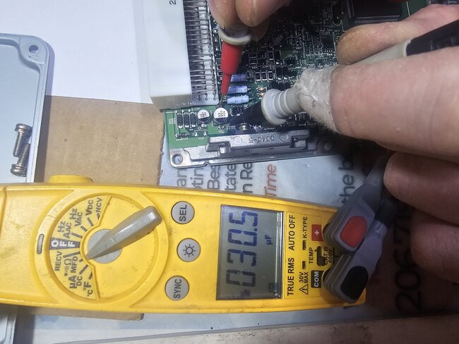 Offboard 2x 10uF caps show 0. others out of range, however might still work with reduced performance.