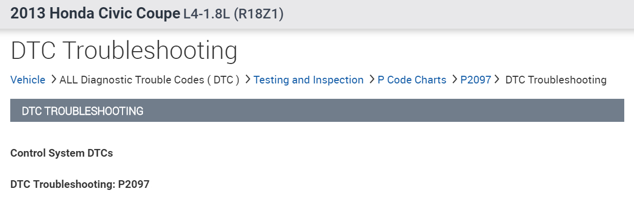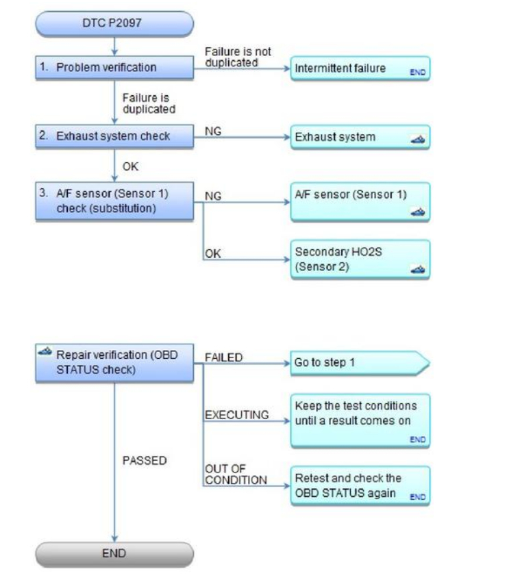 In the diagrams down below I have included the factory diagnostic troubleshooting guide for your vehicle with Direct Trouble Code(DTC) P2097. Please go through this guide and get back to us with what you are able to find out.