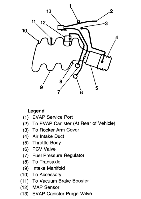 Gasoline vapor in the tank is sucked to the engine through a thin pipe with 2 valves.