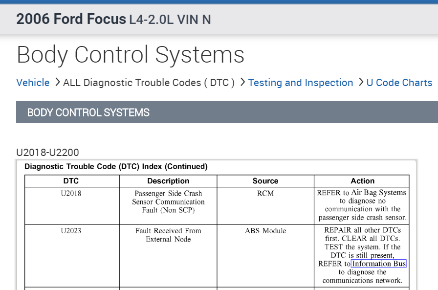 I have included the factory diagnostic troubleshooting guide for DTC U2023 in the diagrams down below. It will require the use of a special tool, and I have highlighted the tool number in the guide for you. Please go through this guide and get back to us with what you are able to find out.