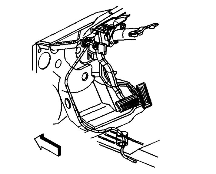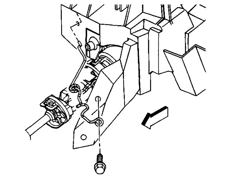 2. Remove the instrument panel knee bolster. Refer to Knee Bolster Replacement in Instrument Panel,Gauges and Warning Indicators.