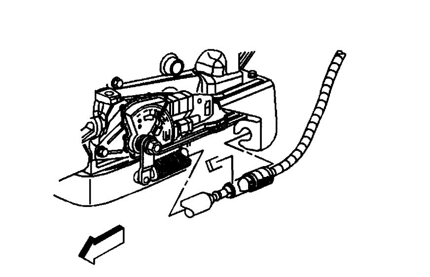 7. Depress the tangs and remove the cable from the steering column bracket.