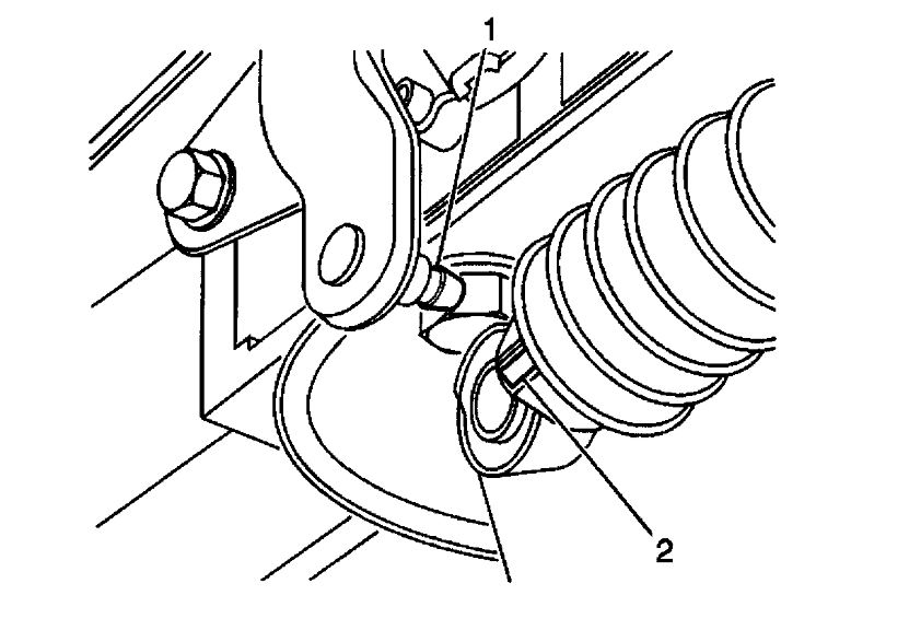 16. Remove the range selector cable end (2) from the transmission range selector lever ball stud (1).