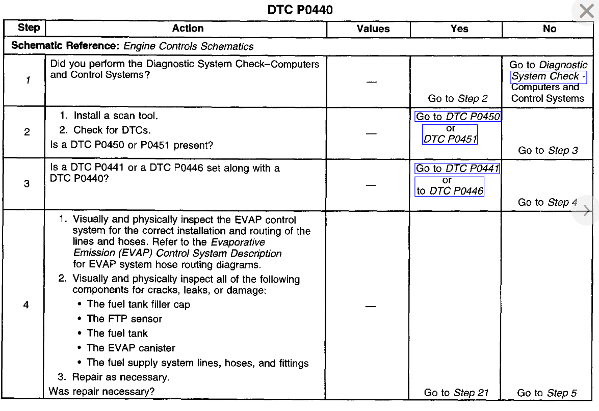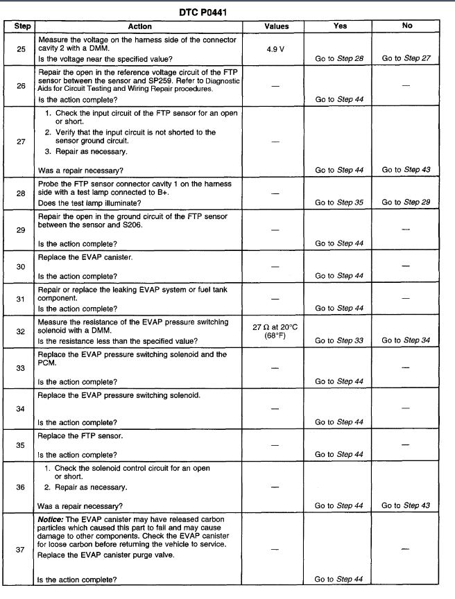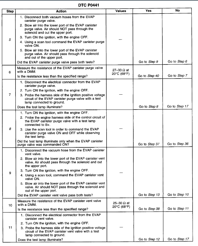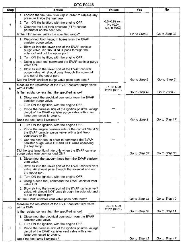 Codes P0440, P0441, and P0446