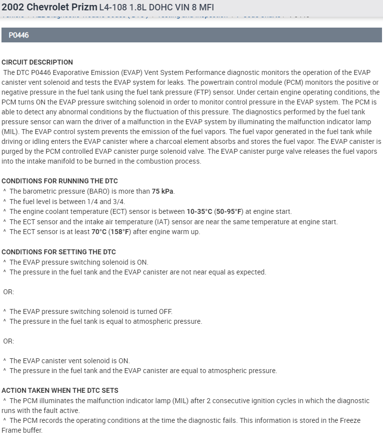 I have attached the troubleshooting guide for the codes P0440, P0441 and P0446 below.