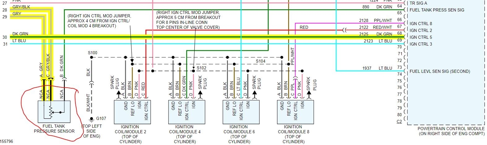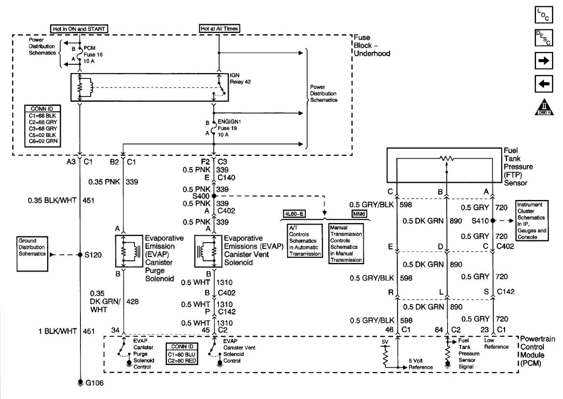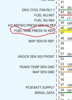 I know what problem is; the pressure sensor on driver side fuel tank is bad. Book does not even show it , but when I did evap test with scanner it’s shows it. took a while to diagnosis this problem, but now driver side fuel tank cannot be removed without doing damage. what I need is a wiring diagram of driver side pressure sensor to ECM, so I can relocate sensor to different location. I could not find one with my resources. factory manual did not even show to have one. I had to dig just to find pictures of it. If you could help that would be great.