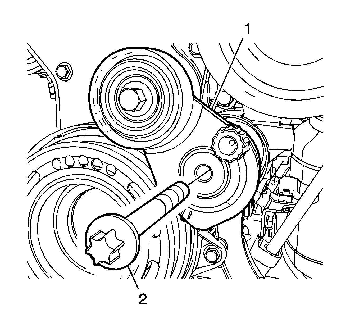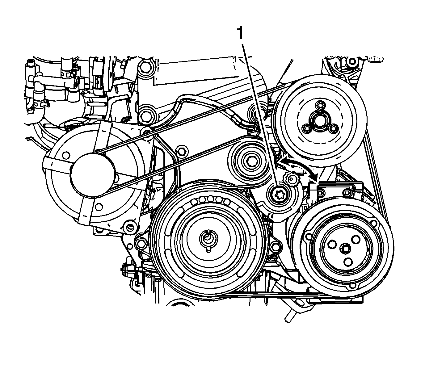 2. Remove the power steering belt. Refer to Power Steering Pump Replacement (1.2L LMU Engine) (See: Power Steering Pump > Removal and Replacement > Power Steering Pump Replacement)Power Steering Pump Replacement (1.4L L95 and 1.5L LV8 Engines) (See: Power Steering Pump > Removal and Replacement > Power Steering Pump Replacement)Power Steering Pump Replacement (1.4L LDT and 1.6L LXV Engines) (See: Power Steering Pump > Removal and Replacement > Power Steering Pump Replacement).