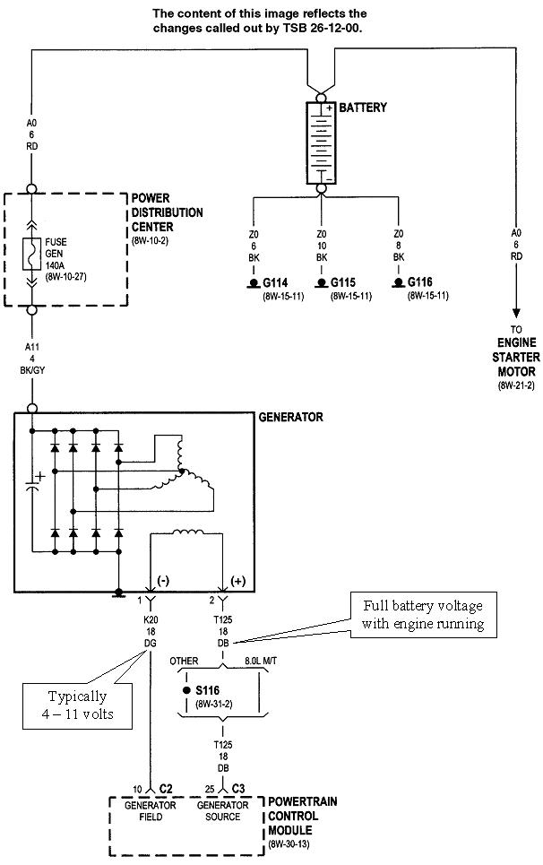 These circuits are uncommonly simple, and easy to diagnose. That is the only proper way to repair it. The entire circuit is shown in the first diagram. I included the second one for reference, but it isn't involved with this problem. The first step is to verify you have full battery voltage on the large black / gray wire bolted to the back of the alternator. Check that with the engine not running. If it is missing, the 140-amp fuse is blown or its bolts are loose. That is bolted into the under-hood fuse box.