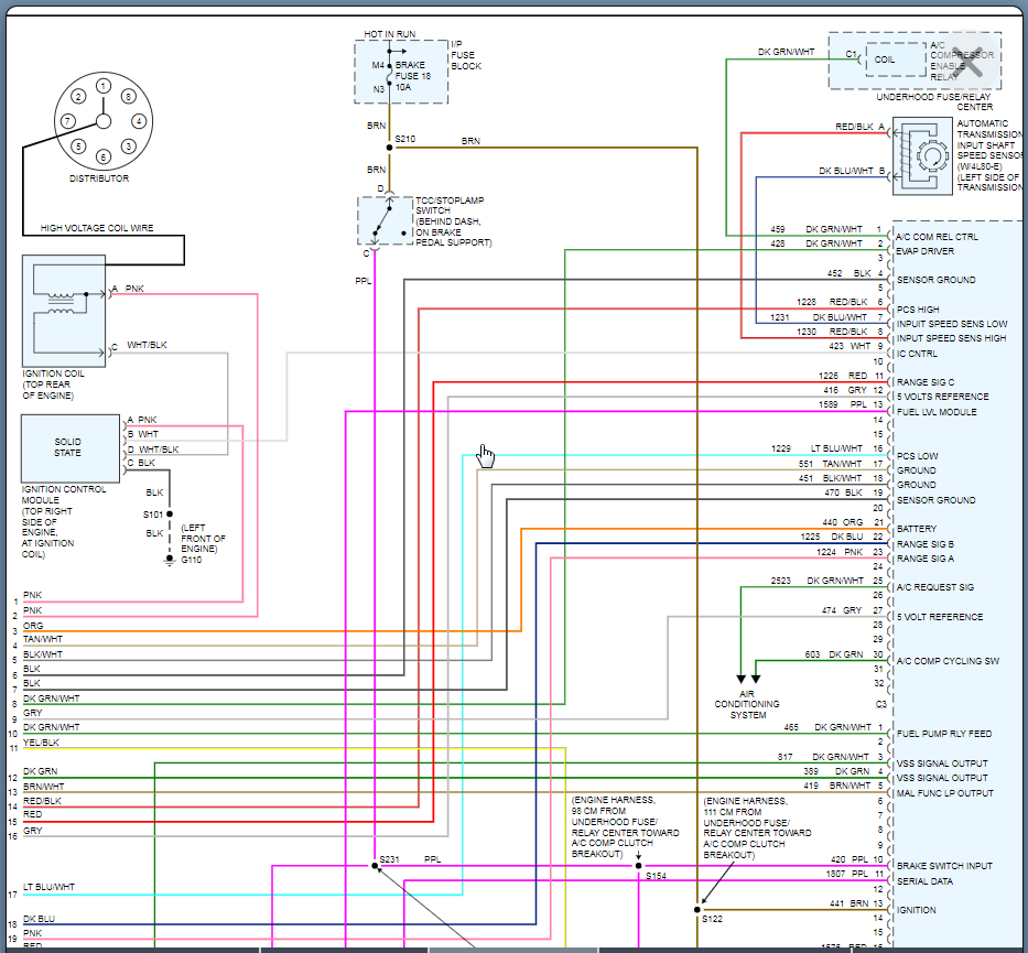 I discovered only 2 wires that came from the Silverado, GRY/BLK-D23 and DK GRN-D7. I removed those to wires however, I discovered a female connector with 6 males pins at the end of the harness and I'm guessing it must be for the ABS module. I'm scratching my head because the ABS module was located on the drivers side fender well on the Silverado and the express van is located in front of the gas tank middle way towards the back of the van . I tried researching in google for the wire orientation for the connector and the wires and I'm stumped. After rewording the search engine, I stumbled your website and I thank you for the comprehensive diagrams for the VIN R diagrams however, I don't know if I'm wording the right connector to the firewall , the 6 pin connector orientates to the ?bulkhead connector? Those wires, 6 of them must function inside the cab? PNK, TAN, PPL, BLK, PPL/WHT & TAN/WHT. Also I re pinned the trans connector for the 4l80e and replaced the GRN/BLK and PPL/WHT, B29&B30 with the winding wires instead of the sleeving that orientates to the top of the transmission instead of the plug in on the driver side of the transmission.