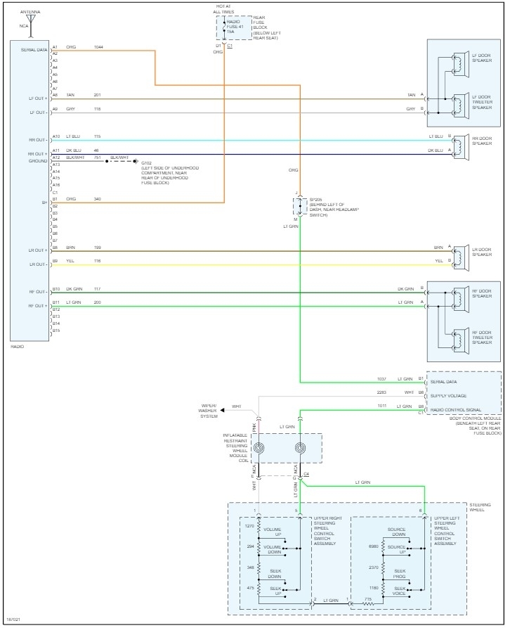 You can get an adapter harness that will just plug in and give you the wire information without cutting any wiring. If the wiring is already cut these are the base and mid-level radio diagrams. However, it will depend on the aftermarket unit you use as to what needs to be connected. If it has the base level unit there are fewer connections.