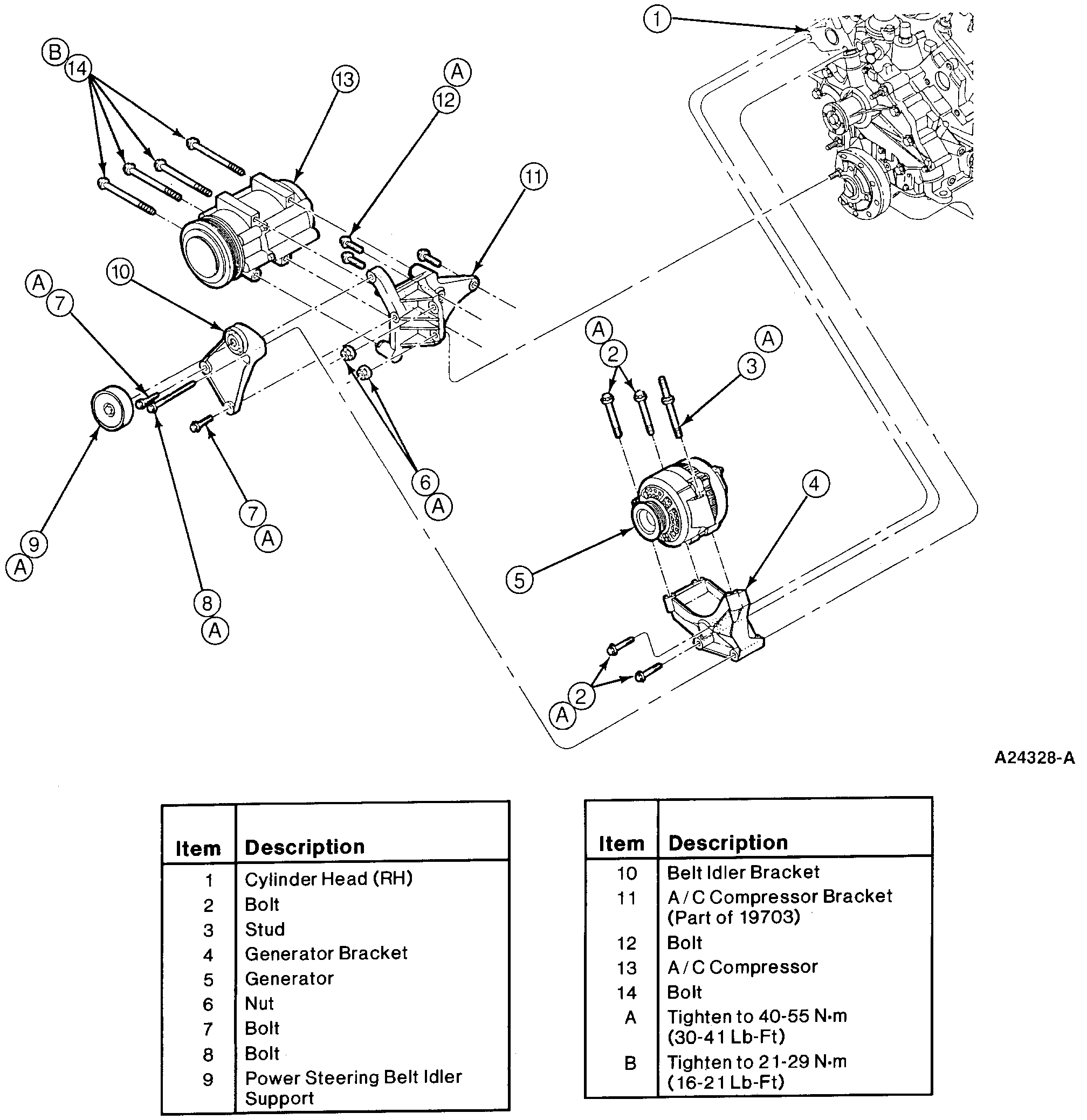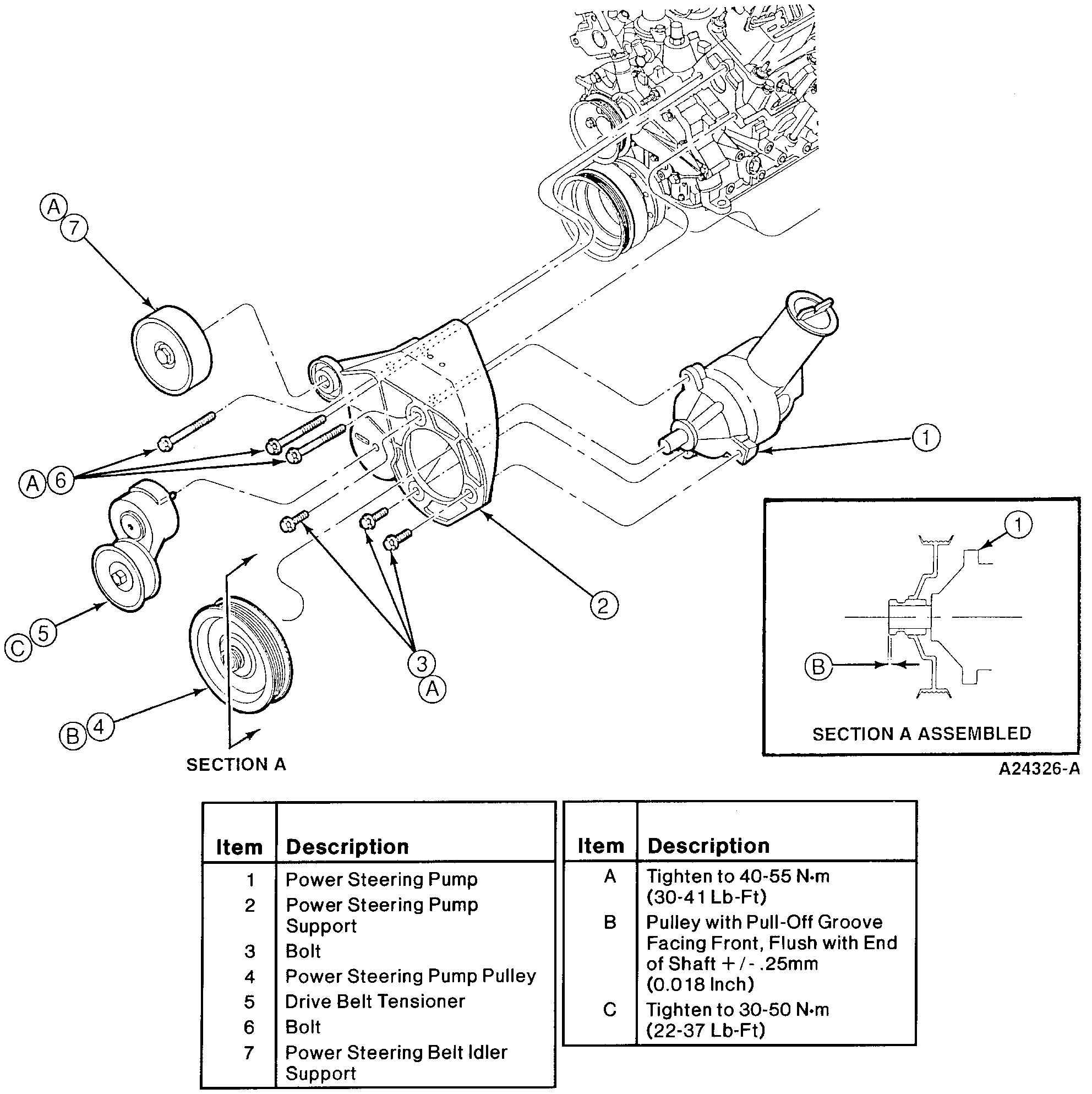 5. Reinstall power steering pump support bracket to engine and torque to 48-61 N.m (35-45 lb-ft).