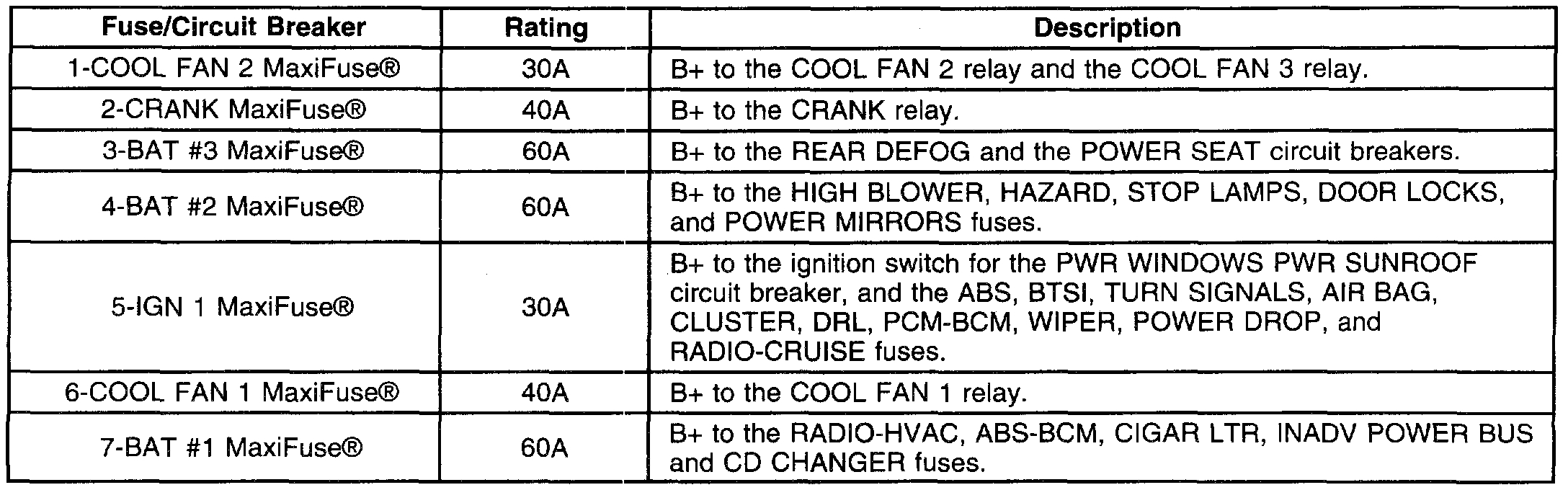 Now, if the electric fans are not turning on, the first thing I need you to check are the fuses in the under hood fuse box. There is a 30 amp fuse there that provides power to the fan relays. I attached the fuse box legend relevant to this fuse.
