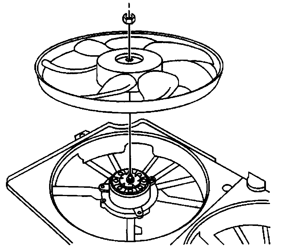 ^ Tighten the cooling fan blade nut to 6 Nm (53 inch lbs.).