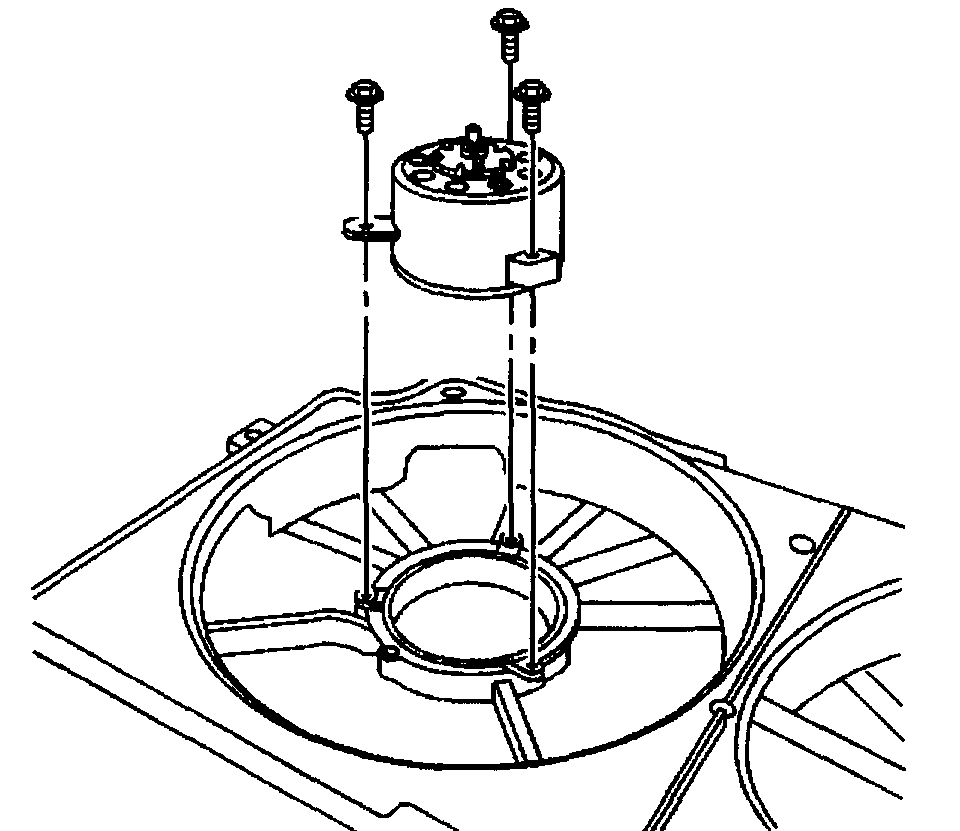 ^ Tighten the cooling fan motor bolts to 6 Nm (53 inch lbs.).